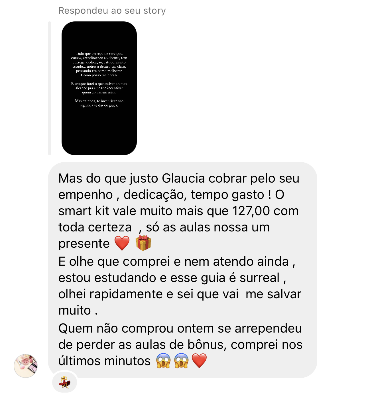 Eu também já me senti frustrada. O que diferencia do Smartkit é que ele não é uma promessa vazia, é um guia prático, com base em 10 anos de experiência real atendendo clientes, criando maquiagens, técnicas em diferentes tipos de pele.