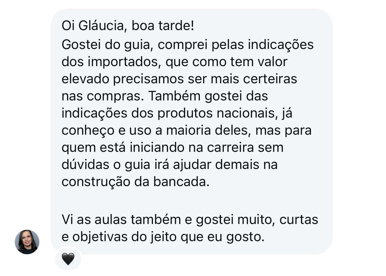 Que deseja agregar valor na sua bancada com produtos de qualidade e alta performance. Os produtos indicados foram testados em diferentes estilos de maquiagem e tipos de pele. O que eu entrego é uma diversidade de produtos para facilitar seu trabalho, mas com opções que você pode ajustar conforme sua identidade artística.